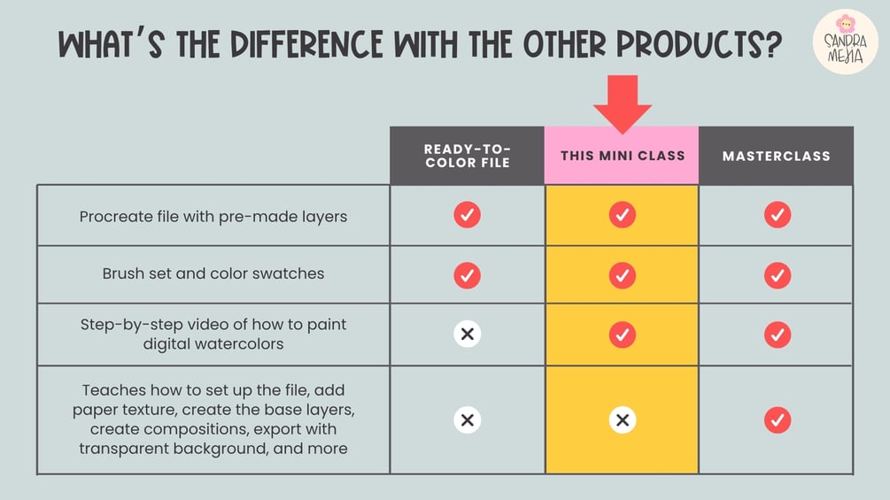 Use the techniques you learn to create your own original artwork (and sell it if you want) Share your finished piece online: tag me @artbysandramejia (I’d love to see it!)
